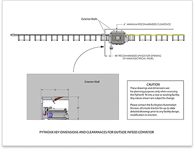 The images below provide dimensions of equipment and clearances that are valuable when laying out a PythonX STRUCTURAL in a fab shop.